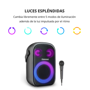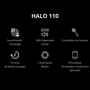 Espléndidos efectos de iluminación. Ultraportátil con mango. Hasta 18 horas de tiempo de reproducción. Emparejamiento estéreo. Personalice los efectos de audio a través de la aplicación. Modos de audio dual.